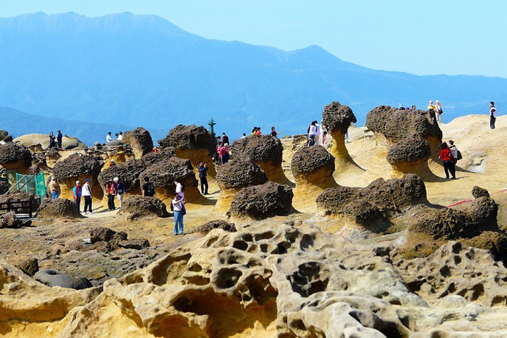 Các mỏm đá ở công viên địa chất Yehliu có những cái tên hết sức ngộ nghĩnh như: Đá Nấm (Mushroom Rock), Đá Nến (Candle Rock), Hài Tiên (Fairy’s Shoe), đá Đầu Rồng (Head Dragon),… và nổi tiếng nhất là hòn Đầu Nữ Hoàng (Queen’s Head).